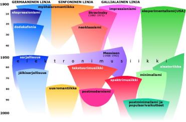 Toisin kuin aikaisemmilla vuosisadoilla, 1900-luvun musiikissa on vaikeaa nähdä yhtä varsinaista päälinjaa. Seisommeko ajallisesti liian lähellä, jotta kuva alkaisi selvitä? Vai onko kyse vain siitä, ettei suuria päälinjoja yksinkertaisesti ole olemassa? Niiden sijaan säveltäjät loivat monia pienempiä polkuja, jotka risteilivät toistensa lomassa. Yhden paksun punoksen sijaan niistä muodostui sienirihmaston kaltainen verkosto, jonka pyrkimyksenä näyttäisi olleen levittäytyä alati suuremmalle alueelle. Käyttövoimana tällä rihmastolla oli säveltäjien tarve luoda järjestystä kaaokseen, puhtaasti utelias kokeilunhalu tai tutkimustyö musiikin eri parametrien parissa.